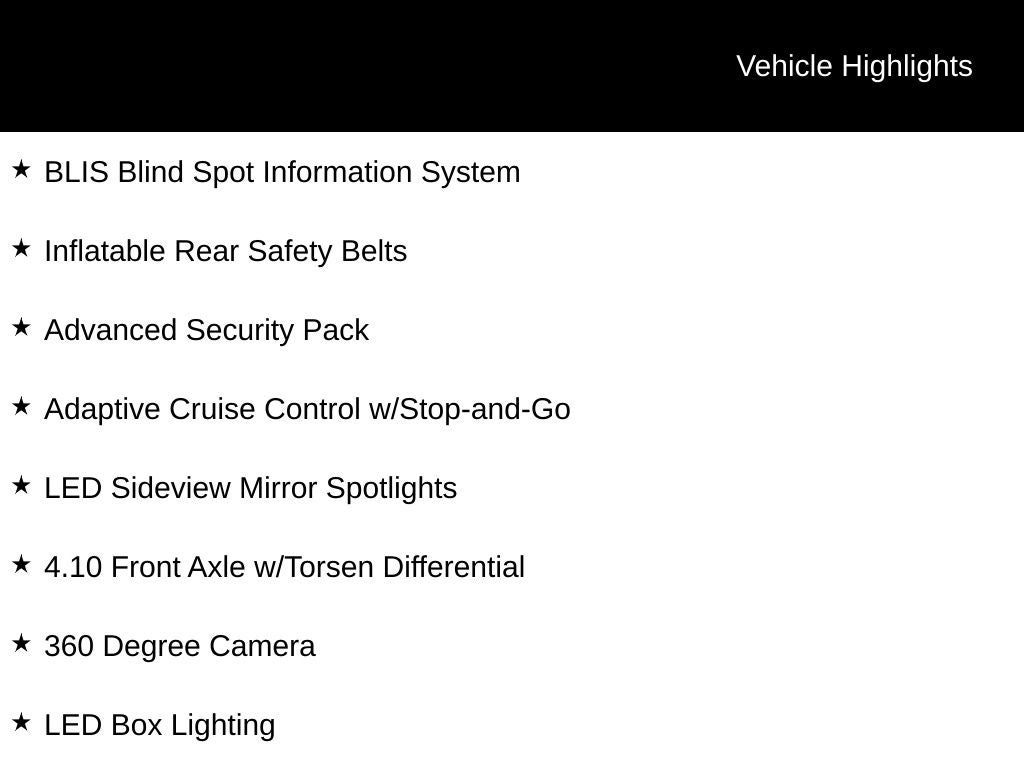 - 4-Wheel Disc Brakes w/4-Wheel ABS, Front And Rear Vented Discs, Brake Assist, Hill Descent Control, Hill Hold Control and Electric Parking Brake
